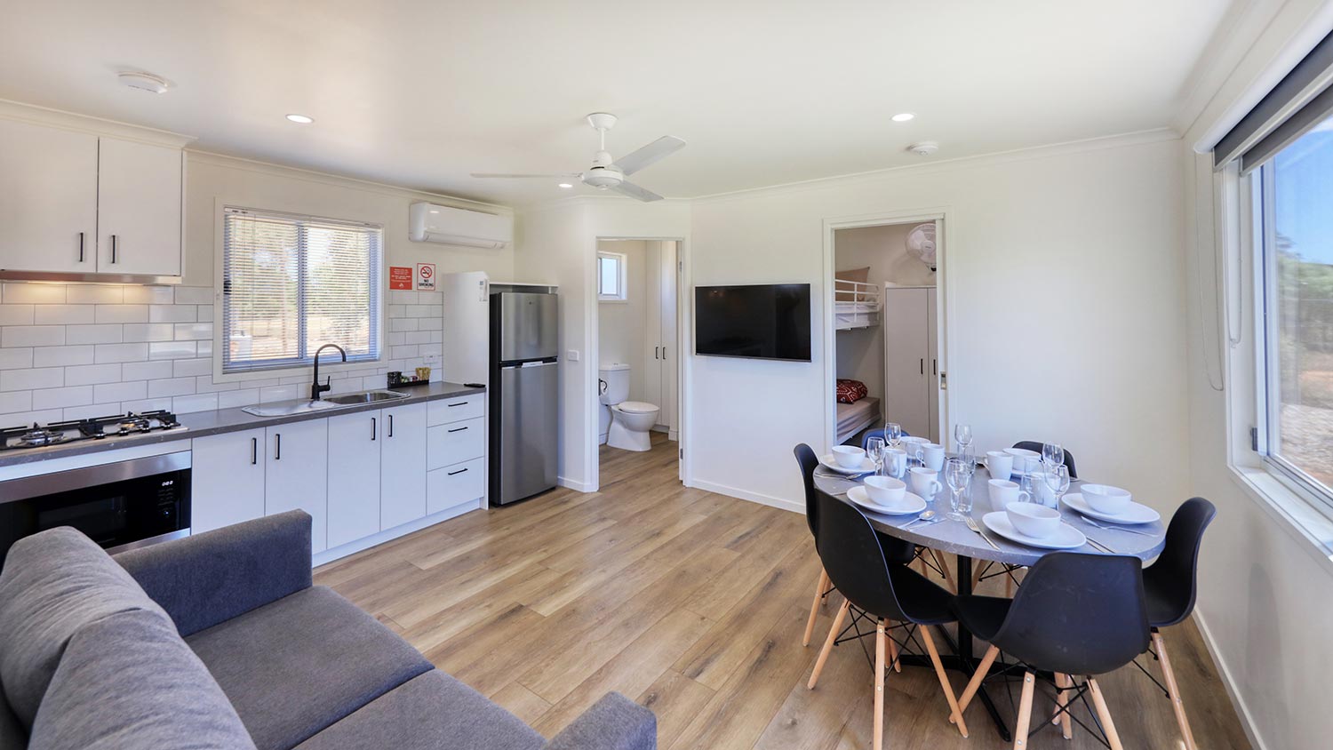 Popular with families and groups, our 2 Bedroom Deluxe Cabin is the perfect option for those travellers looking for a larger space to kick back and relax after a day exploring the Aussie outback. Fully self-contained, they come with everything you need at a price you can afford.